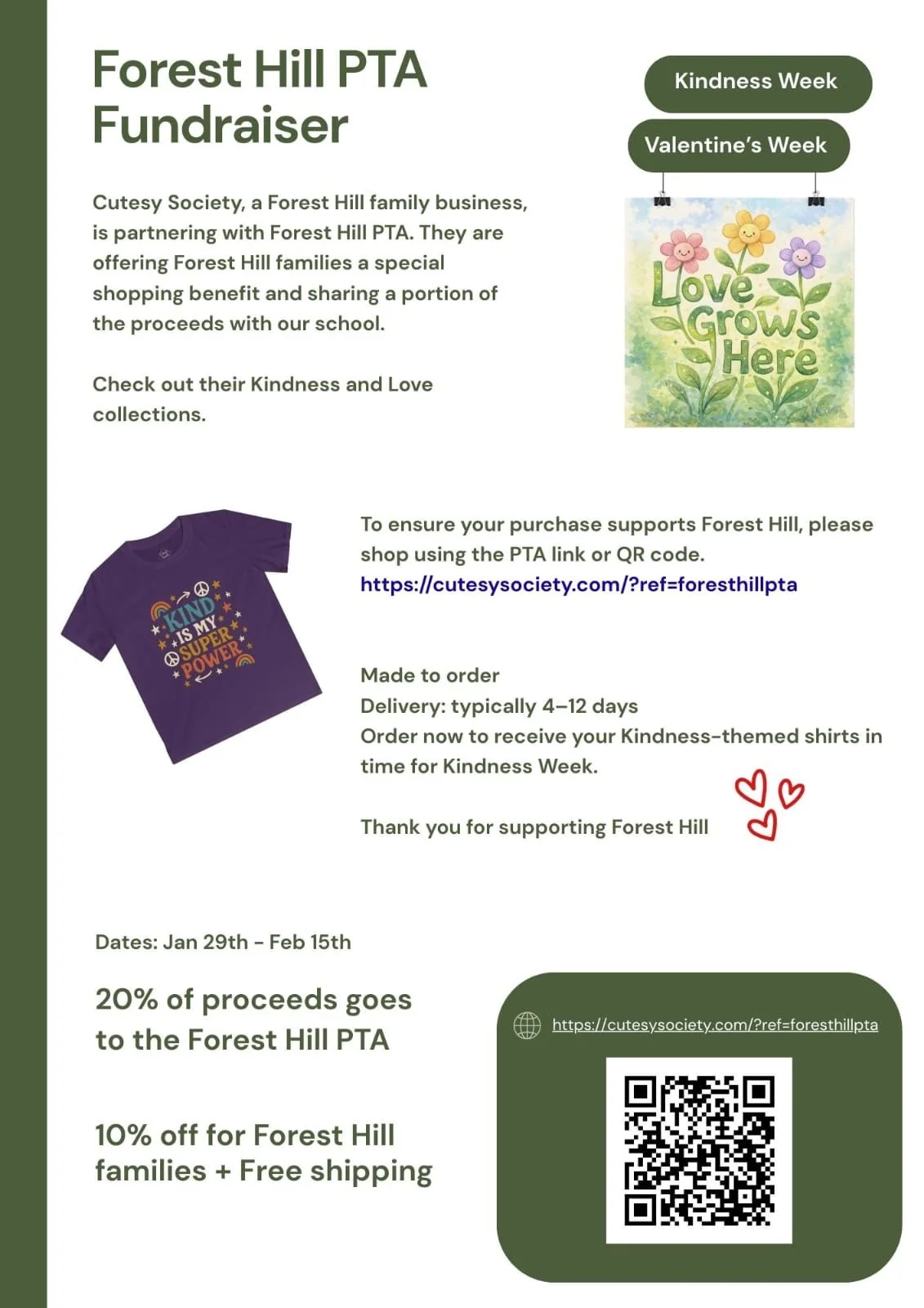 Cutesy Society is a Falcon Family business partnering with the PTA to give a portion of their proceeds for Kindness week! Use our link to shop and a portion of the proceeds will go to the PTA. Use code “FHPTA” for 10% off your purchase.