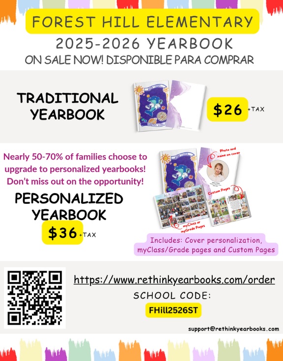 You can also begin the process to order Yearbooks! You can read more at our information tab. Yearbooks start at $26. Visit www.rethinkyearbooks.com/order with code: FHill2526ST.